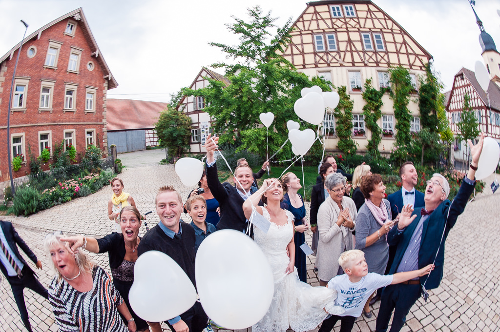 Die Feier fand dann im Winzerhof Stahl in Simmershofen statt. Im kleinen Nebengebäude, ganz kuschelig in der Stube und chillig mit Wintergarten. Für größere Hochzeitsgesellschaften nicht geeignet, aber für 25 Leute perfekt.